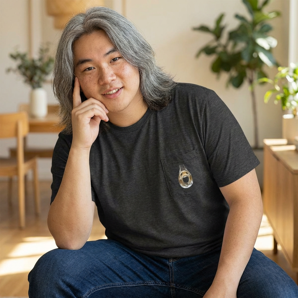 A light, comfy pocket tee with a small, playful image on the left chest — effortless and quietly expressive. The soft Airlume combed and ringspun cotton feels breathable against the skin, while the retail fit and side seams keep the silhouette clean and modern. Wear it when you want a low-key look that still shows a bit of personality: mornings at the coffee shop, slow weekend walks, or layering under a jacket for cooler nights. The tiny chest image sits like a private joke or subtle statement, letting you keep things simple but not plain.
